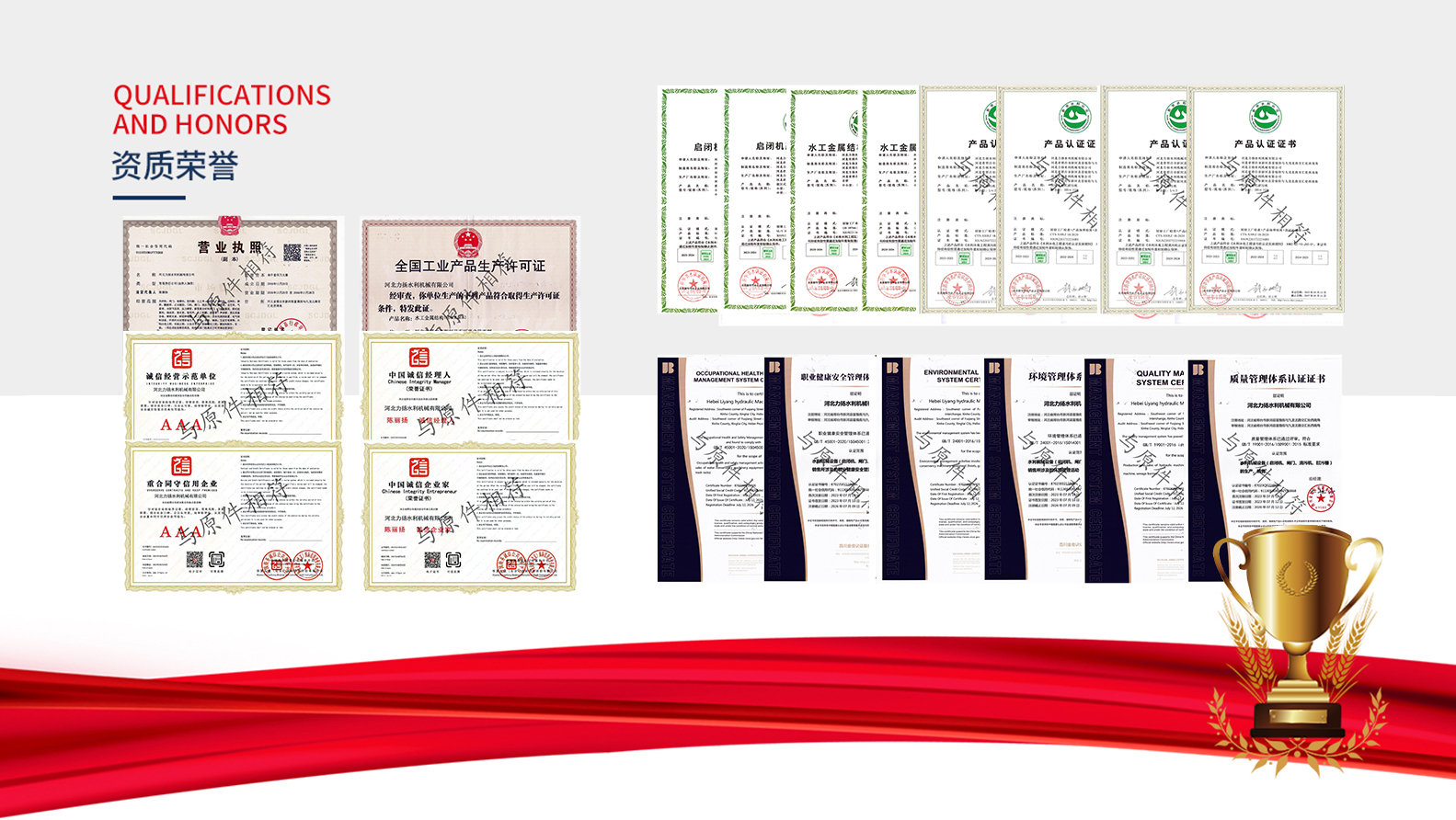關(guān)于我們 !   河北力揚水利機械有限公司,成立于2016年,地址河北省邢臺市新河縣富強街與九龍北路交匯處西南角具備生產(chǎn)及供應(yīng)、安裝能力。我們公司位于董振堂將軍故里,河北省邢臺市新河縣九龍工業(yè)區(qū),是一家集設(shè)計、生產(chǎn)、銷售、安裝、售后一體的綜合性水利機械廠家,現(xiàn)有人員共40余名,獲有國家頒發(fā)的全國工業(yè)產(chǎn)品生產(chǎn)許可證、ISO質(zhì)量管理體系認證、環(huán)境體系認證、職業(yè)健康體系認證并且我公司通過水利相關(guān)部門水工金屬結(jié)構(gòu)質(zhì)量檢驗中心的考核和監(jiān)督下獲得了:認證頒發(fā)的四項產(chǎn)品認證證書(平面閘門、弧形閘門、回轉(zhuǎn)式清污機、耙斗式清污 ABOUT US